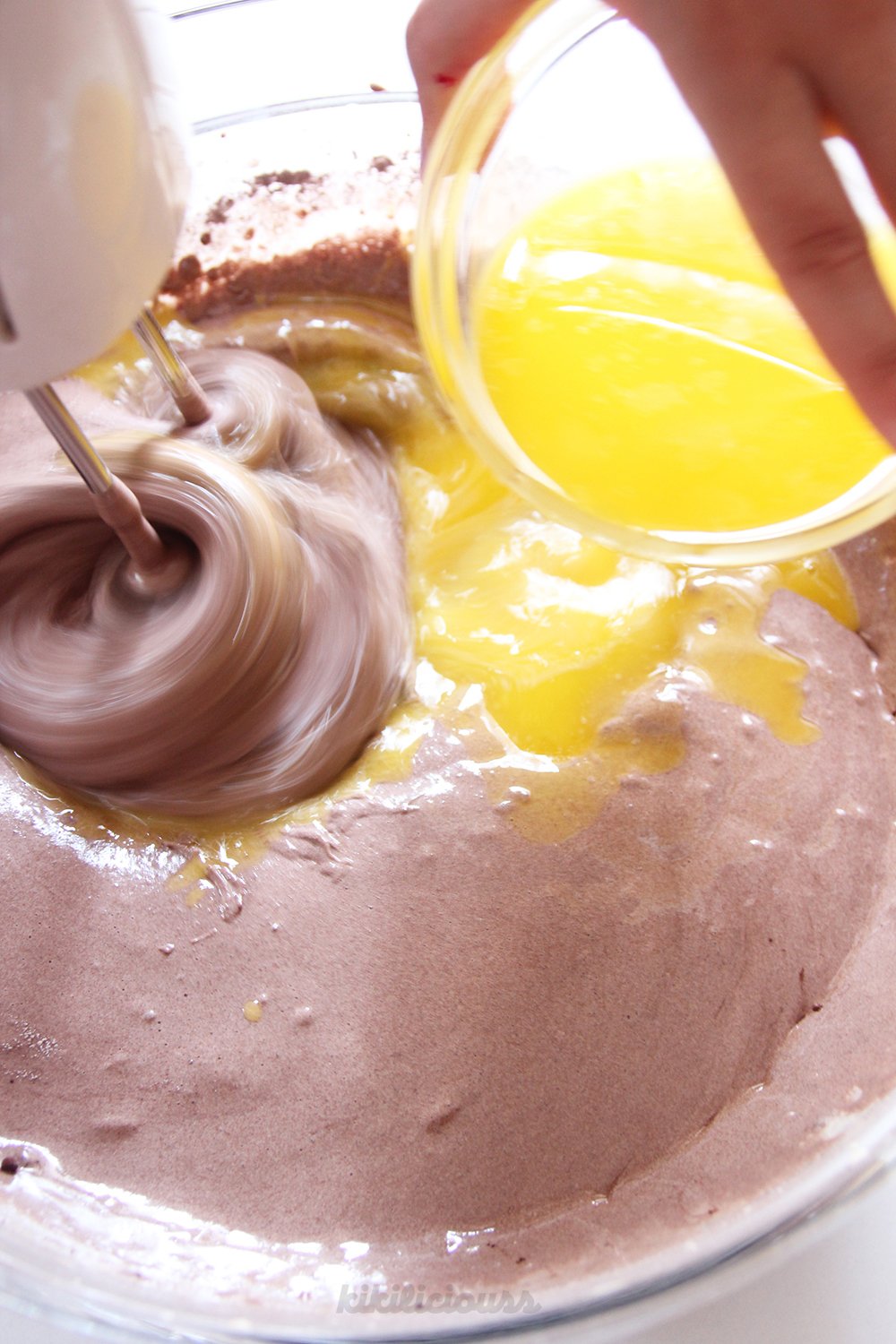 Në një tas përzieni së bashku miellin, fryrësin e ëmbëlsirave dhe kakaon, lërni mënjanë