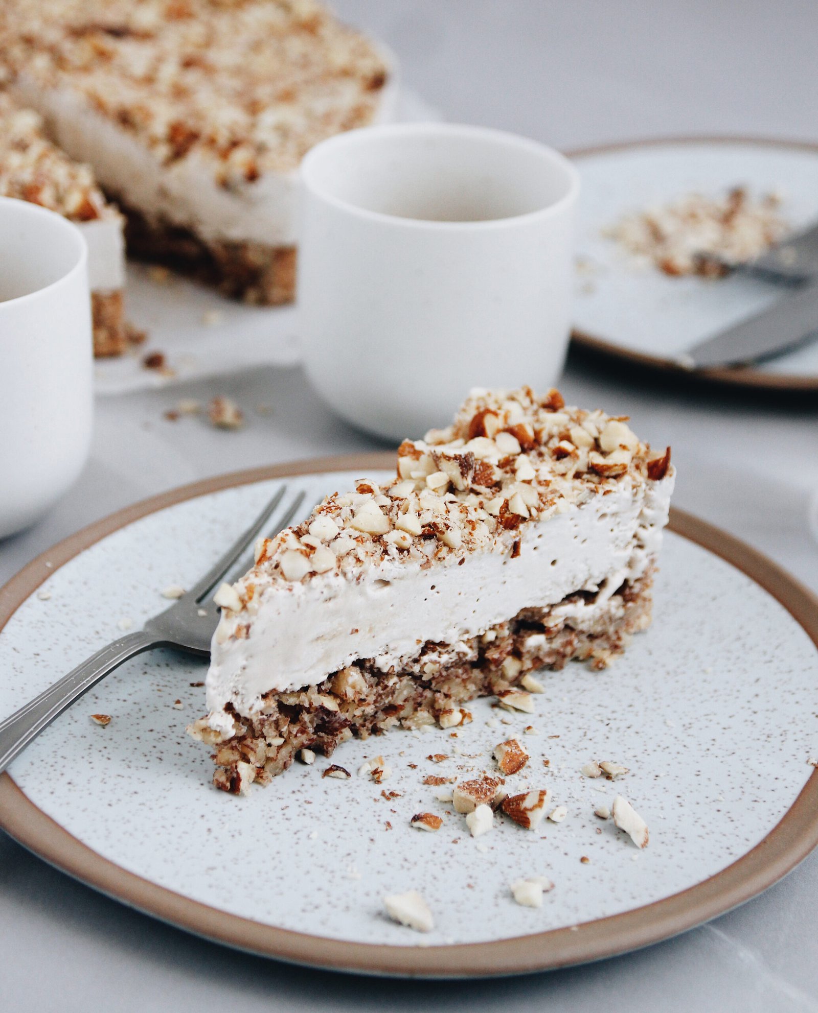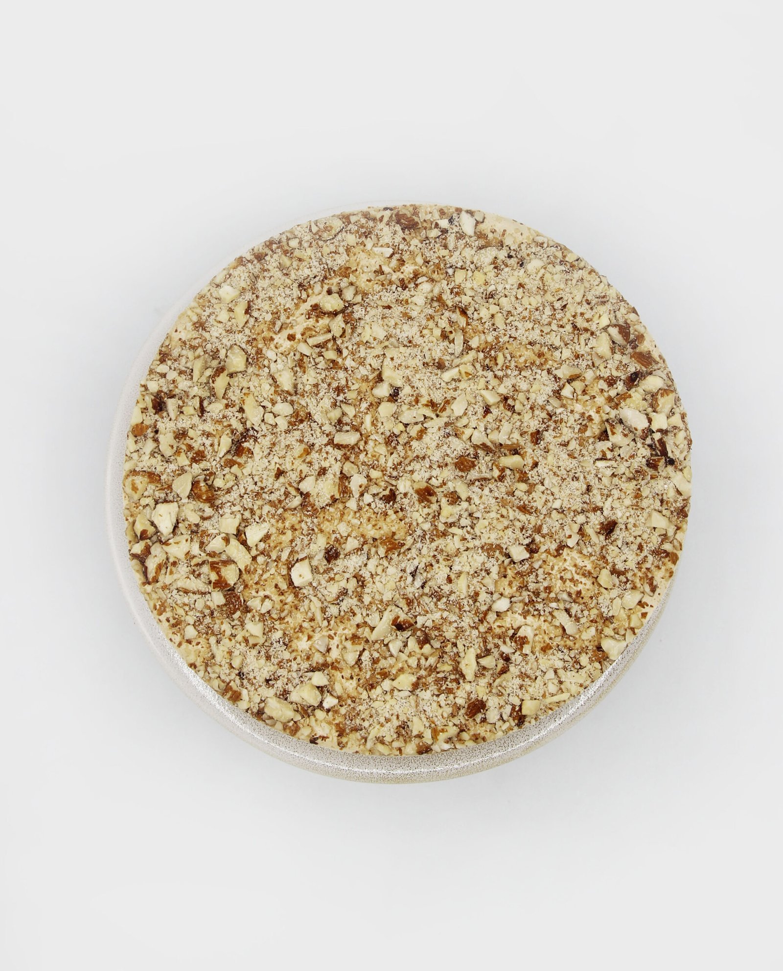 Baza e tortës me merengë mbushur me shumë bajame, shoqërohet me një krem fantastik ajke të freskët, vanilje e kafe. Dekoruar me bajame të bluar.