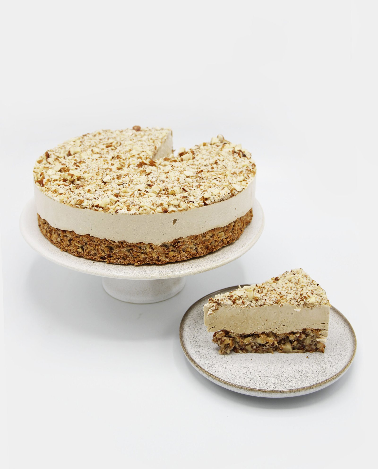 Baza e tortës krokante lidhet më së miri me kremin e butë të mbushjes me vanilje dhe pak kafe, duke sjellë në memorie Kapuçino-n!